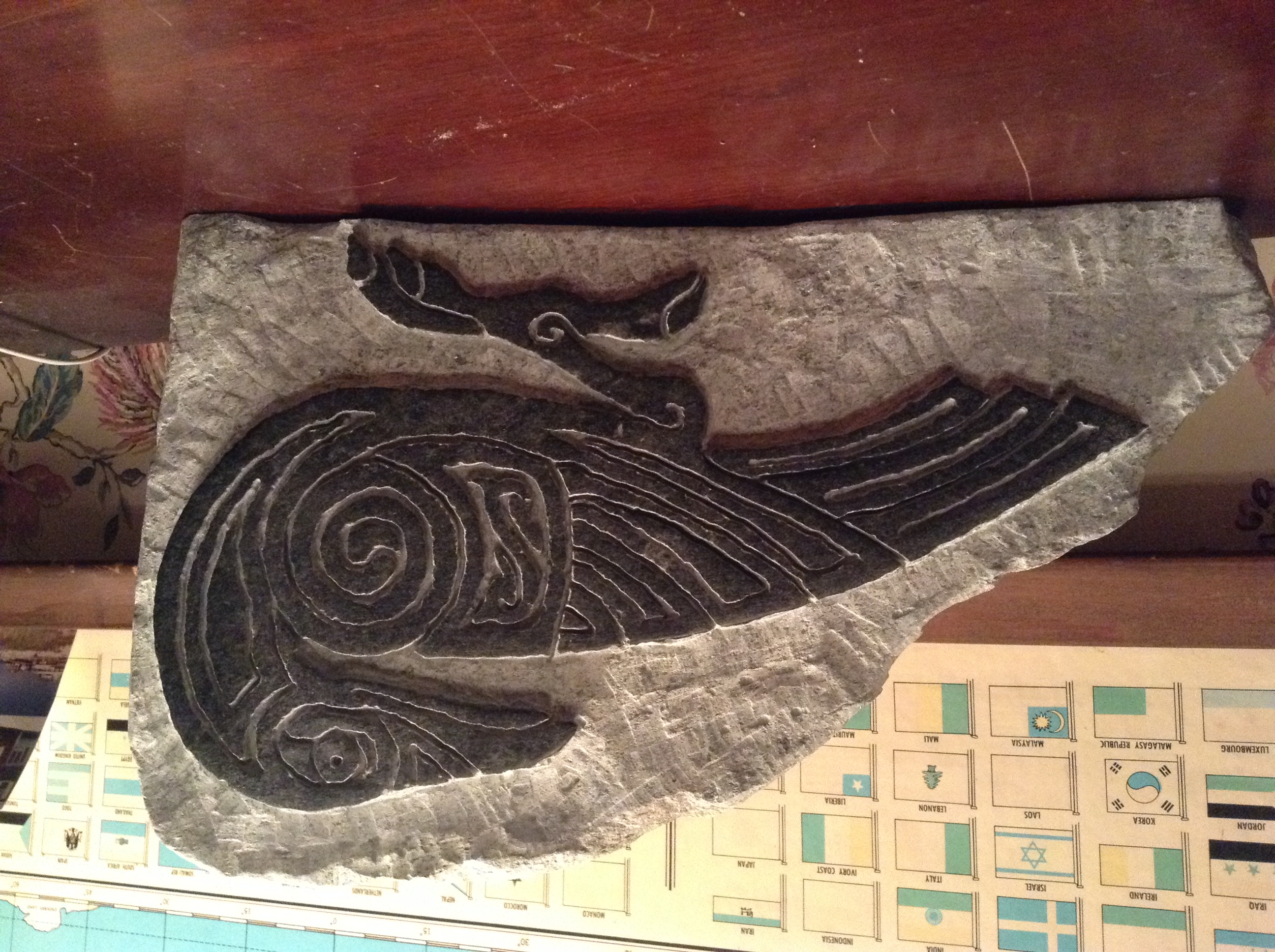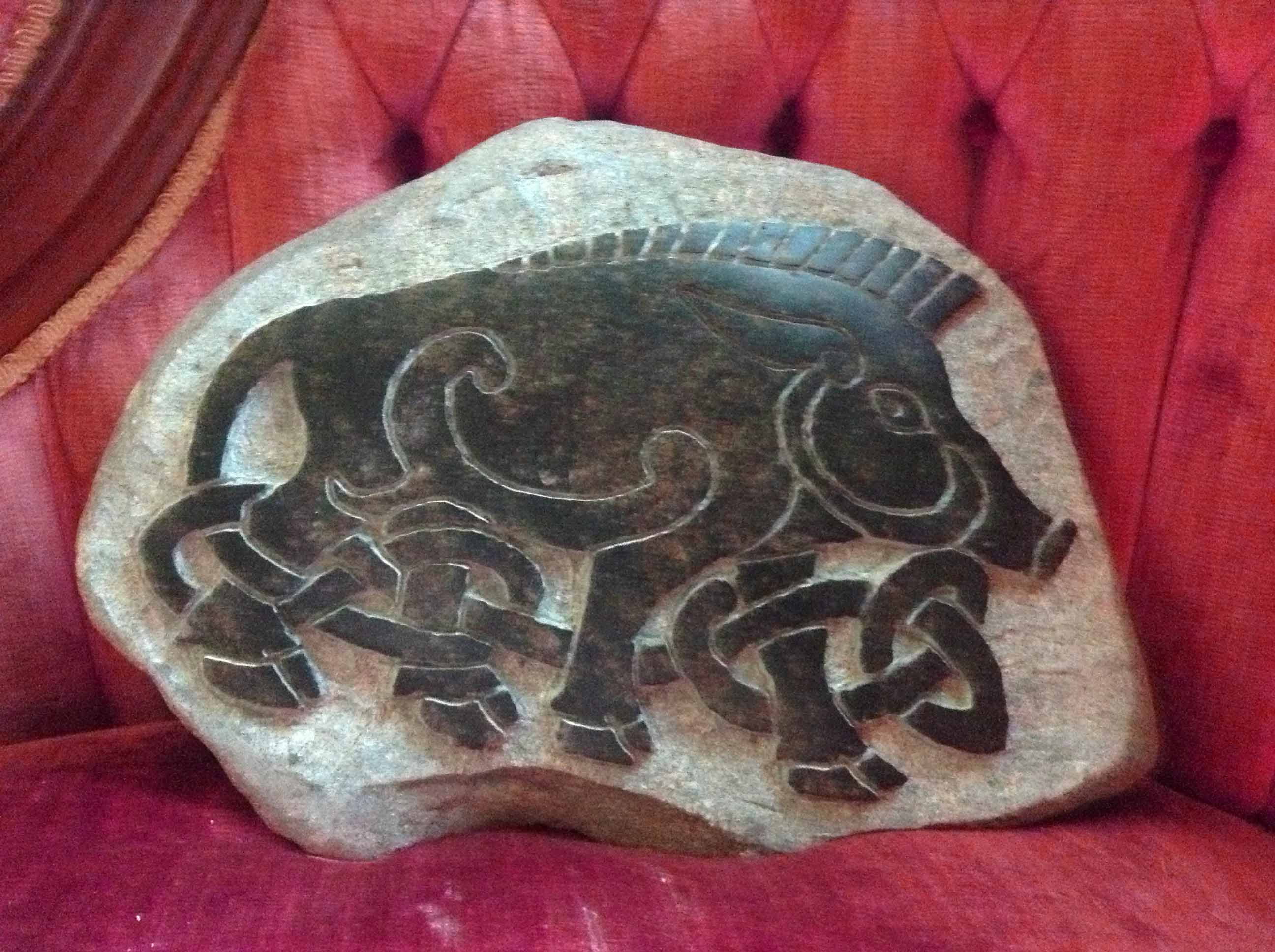 Soapstone relief carving of a Celtic boar – roughy 17x13